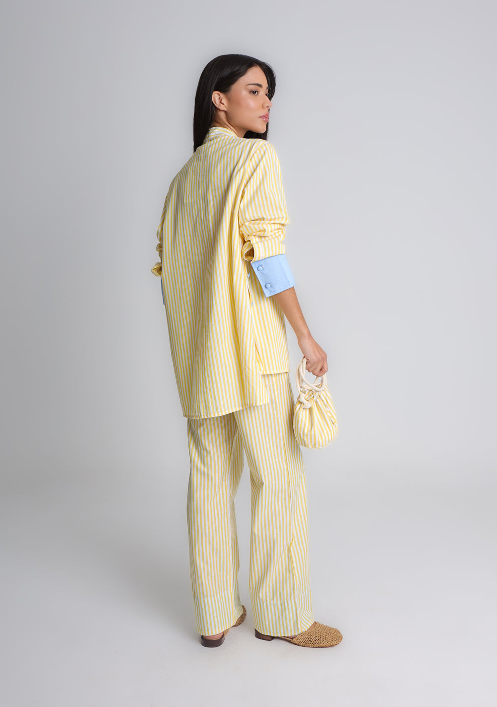 A Calça Martha apresenta alfaiataria sofisticada em 100% algodão. Com corte reto, cós estruturado, botão forrado e barra dupla contrastante, proporciona elegância atemporal com leveza, perfeito para o dia-a-dia.