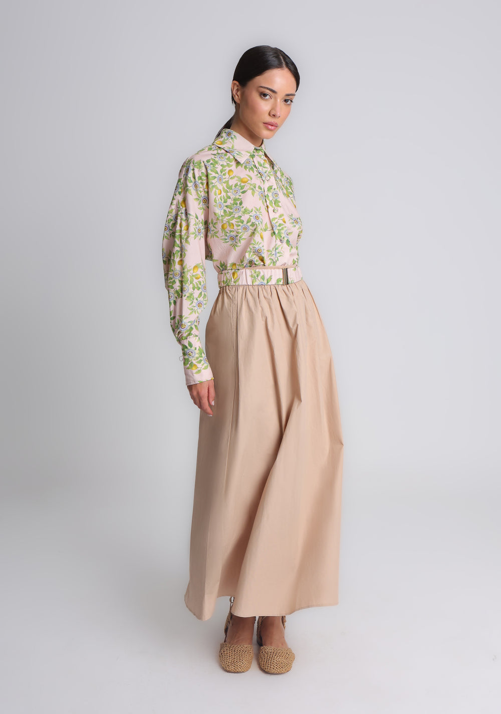 A Saia Vick une estrutura e leveza em um design atemporal. Feita em algodão encorpado 100%, possui modelagem evasê, elástico na cintura para ajuste confortável e bolsos laterais que adicionam funcionalidade com elegância. É ideal para composições urbanas ou sofisticadas, como com camisas estampadas e peças neutras. Composição: 100% Algodão Cores: Bege Medidas da Modelo: Altura: 1,71 m / Busto: 83 cm / Cintura: 60 cm / Quadril: 90 cm. A modelo veste tamanho PP |