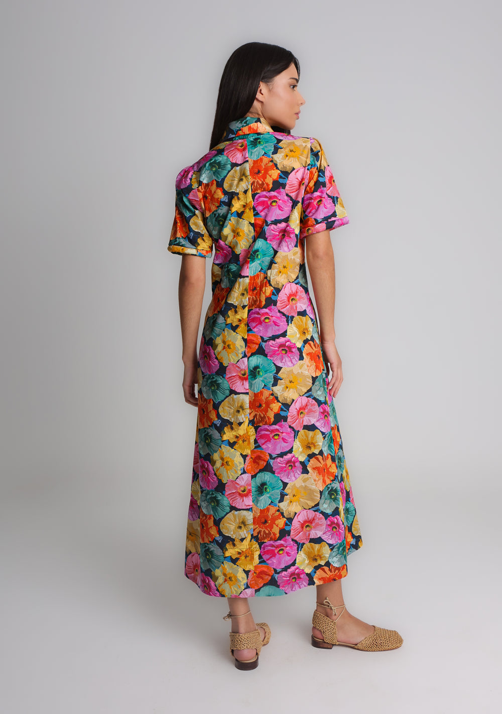 O Vestido Malu une funcionalidade e sofisticação em uma modelagem chemise versátil. Feito em algodão aveludado 100%, possui botões frontais, bolso lateral e cinto no mesmo tecido. Disponível nas estampas Maracujá Azul e Flower Power Marinho, é a peça ideal para looks elegantes e cheios de personalidade.